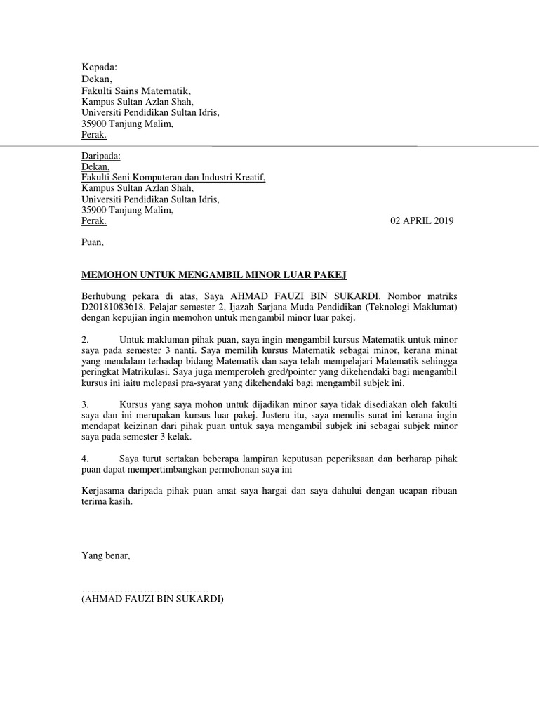 Contoh Surat Permohonan Tangguh Pengajian Ums Pdf