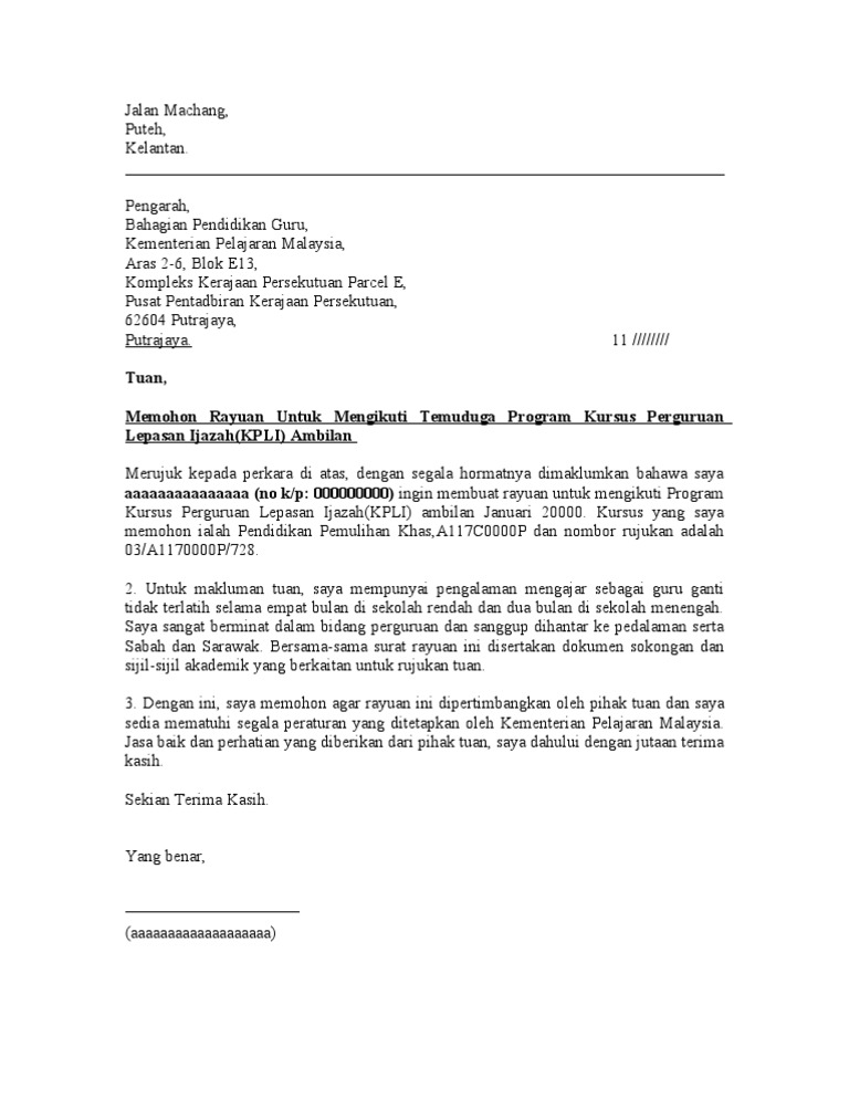 Contoh Surat Rayuan Kpli 2010 Pdf